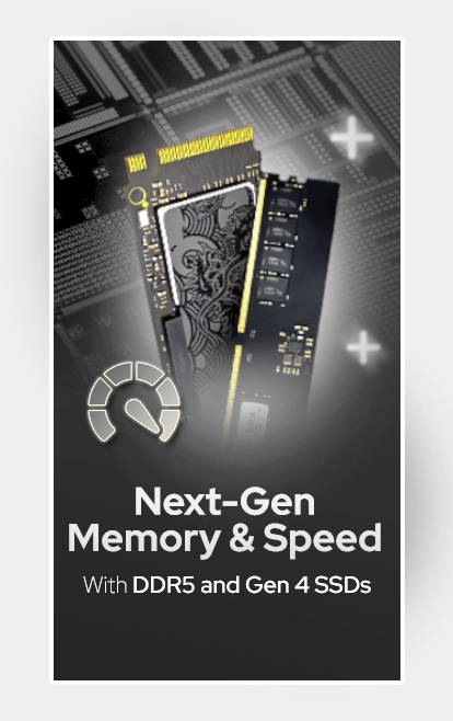 Dilengkapi memori DDR5 dan penyimpanan SSD Gen 4 untuk kecepatan baca-tulis super cepat. Proses multitasking, booting, dan loading aplikasi jadi lebih responsif dan efisien.
