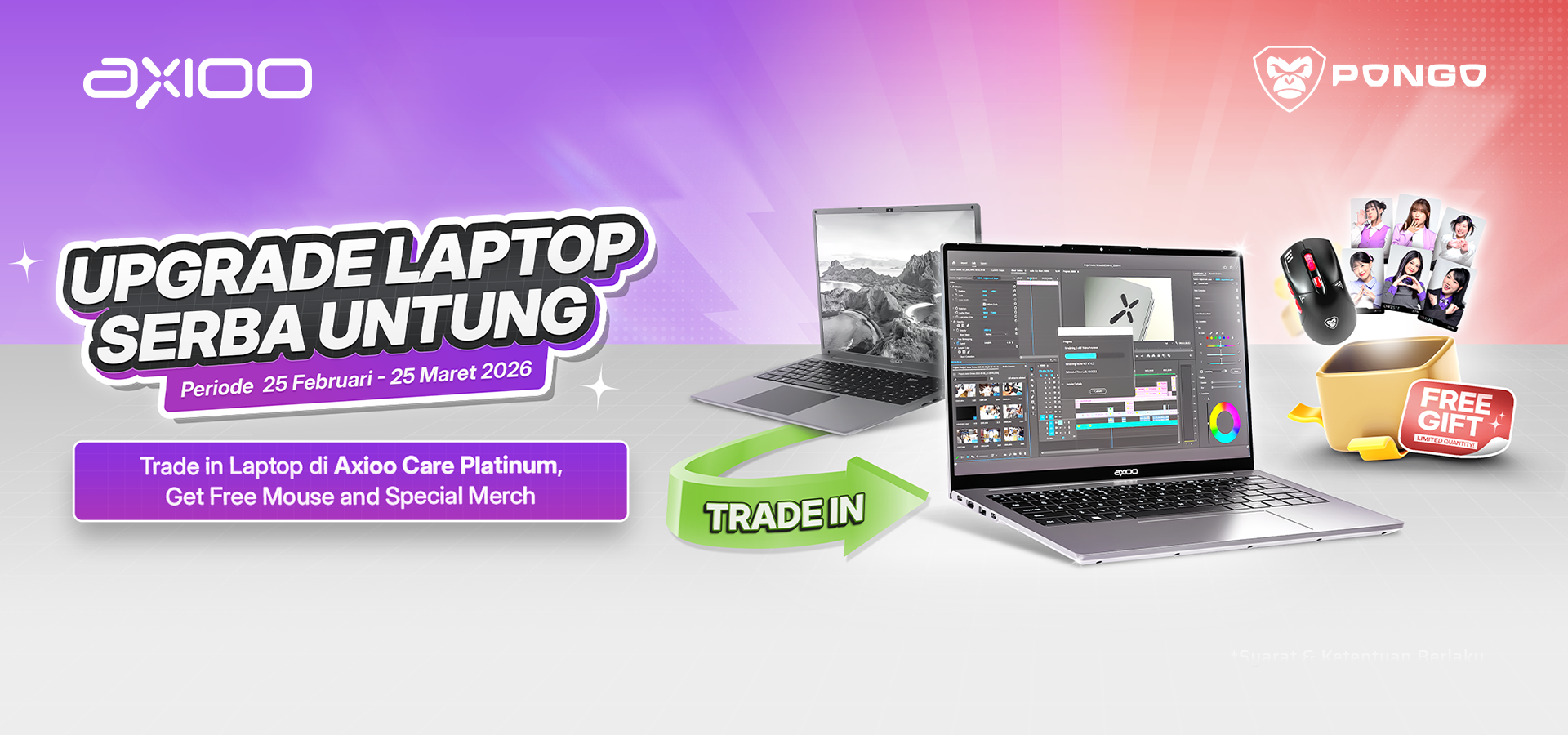 Berlaku untuk trade-in semua laptop (Axioo & non-Axioo) ke laptop Axioo maupun Pongo
